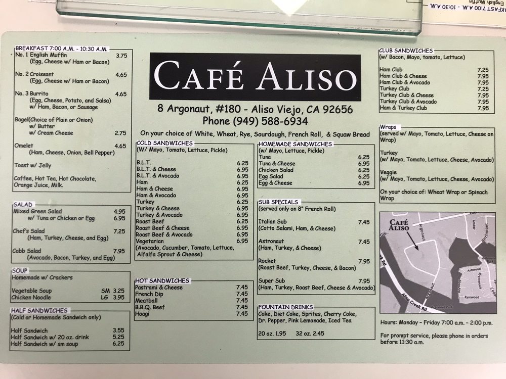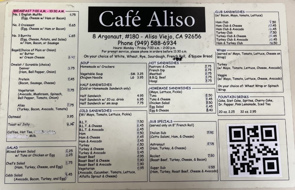 Cafe Aliso, located in Aliso Viejo, CA, is a hidden gem in a corporate business park setting offering a variety of fresh and flavorful sandwiches. With a welcoming atmosphere and friendly staff, this Asian, Black, Latinx, and LGBTQ-owned establishment provides excellent service and delicious food. Patrons rave about the generous portions and fresh ingredients, with options like the BBQ Beef on a French Roll and egg salad sandwich standing out as customer favorites. The menu also includes Korean specials that are highly recommended by regulars. Cafe Aliso not only caters to lunchtime needs but also offers catering services, takeout, delivery, and happy hour specials. With a focus on sustainability, they provide compostable containers and plastic-free packaging, making it a great choice for environmentally conscious diners. Visit Cafe Aliso for a satisfying meal that exceeds expectations.